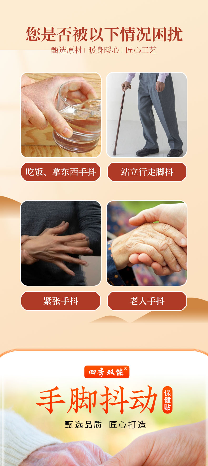四季雙能手腳抖動(dòng)保健貼,甄選草本原材萃取,溫和呵護(hù),科學(xué)配比,親膚舒適,適宜于腳抖手抖的亞健康人群,配方、使用方法、持續(xù)溫護(hù),正規(guī)廠家,標(biāo)準(zhǔn)化生產(chǎn)車間,多樣化貼劑定制,出貨快,承接貼牌代加工,支持批發(fā)代理,量大從優(yōu)。