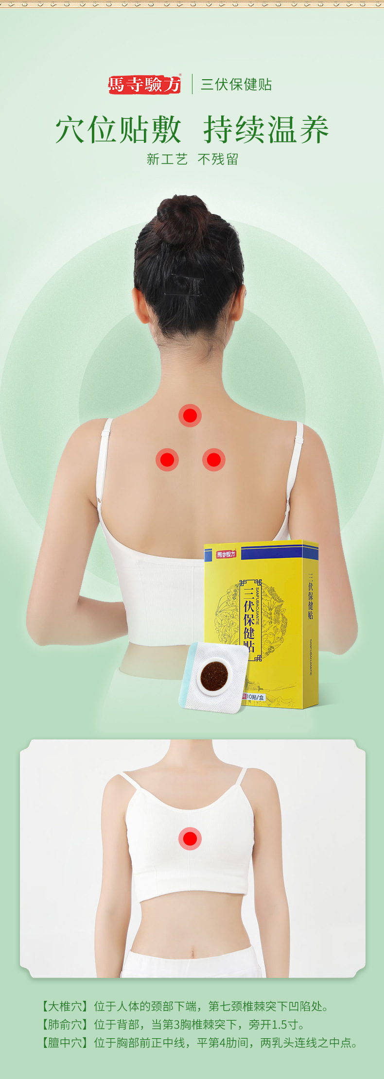 為您介紹馬寺驗(yàn)方三伏貼的功效與作用,三伏貼加工生產(chǎn)所需的原材配方,三伏貼貼敷部位圖,源頭三伏貼廠家批發(fā),草本多重提取,載膏量足,外用貼劑產(chǎn)品信息等,欲了解更多三伏貼信息,可在網(wǎng)站底部留言 ,或撥打貼劑生產(chǎn)廠家電話咨詢(xún),合作靈活多樣,三伏貼加工按需定制!