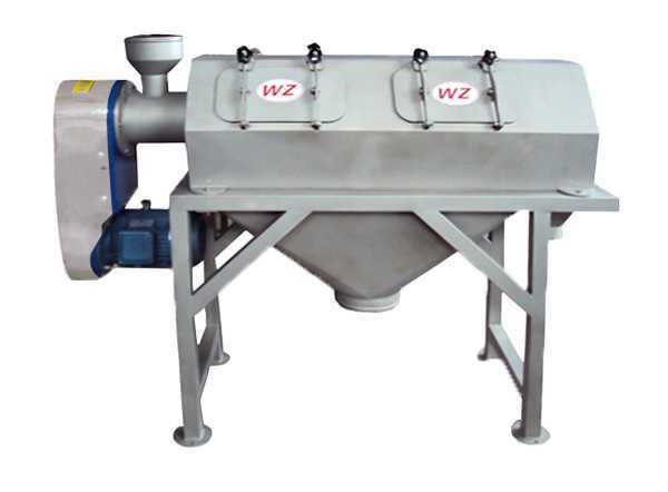 QXS臥式氣旋篩由于形狀為橫臥狀所以也叫臥式氣流篩或臥式氣流篩粉機(jī),篩網(wǎng)為圓筒狀,置于機(jī)體內(nèi),物料通過螺旋輸送系統(tǒng)后,和氣流混合、霧化進(jìn)入網(wǎng)筒內(nèi);通過網(wǎng)筒內(nèi)風(fēng)輪葉片使物料同時(shí)受離心力和旋風(fēng)推進(jìn)力,從而使物料噴射過網(wǎng),由細(xì)料排出口排出,不能過網(wǎng)的物料沿網(wǎng)筒壁從粗料排出口排出。